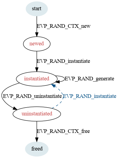 | EVP_RAND_CTX_set_params | newed | instantiated | uninstantiated | ||